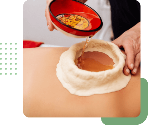 Spinal basti in Ayurveda is an external oil therapy that involves pouring warm herbal oil over the spine and retaining it inside a well made of dough. It is a form of panchakarma, a detoxification and rejuvenation process in Ayurveda.